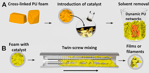為了擴(kuò)大回收利用的可能性,來自明尼蘇達(dá)大學(xué)和伊利諾斯州西北大學(xué)的科學(xué)家們?cè)O(shè)計(jì)了一種工藝,他們首先將聚氨酯泡沫廢料跟催化劑溶液混合,這使得泡沫具有延展性。